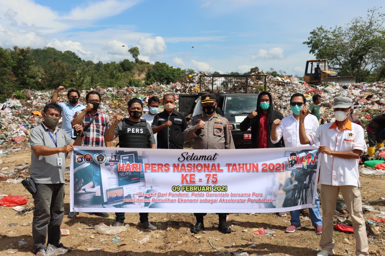 Gorontalo - NewsKPK.com - Dalam rangka memperingati Hari Pers Nasional (HPN) 2021 dan hari jadi PWI Ke-75, Bidang Humas Polda Gorontalo bersama Insan Pers Propinsi Gorontalo menggelar aksi kemanusian bakti sosial berupa bagi - bagi Sembako di TPA Talumelito Kecamatan Telaga Biru Kabupaten Gorontalo,