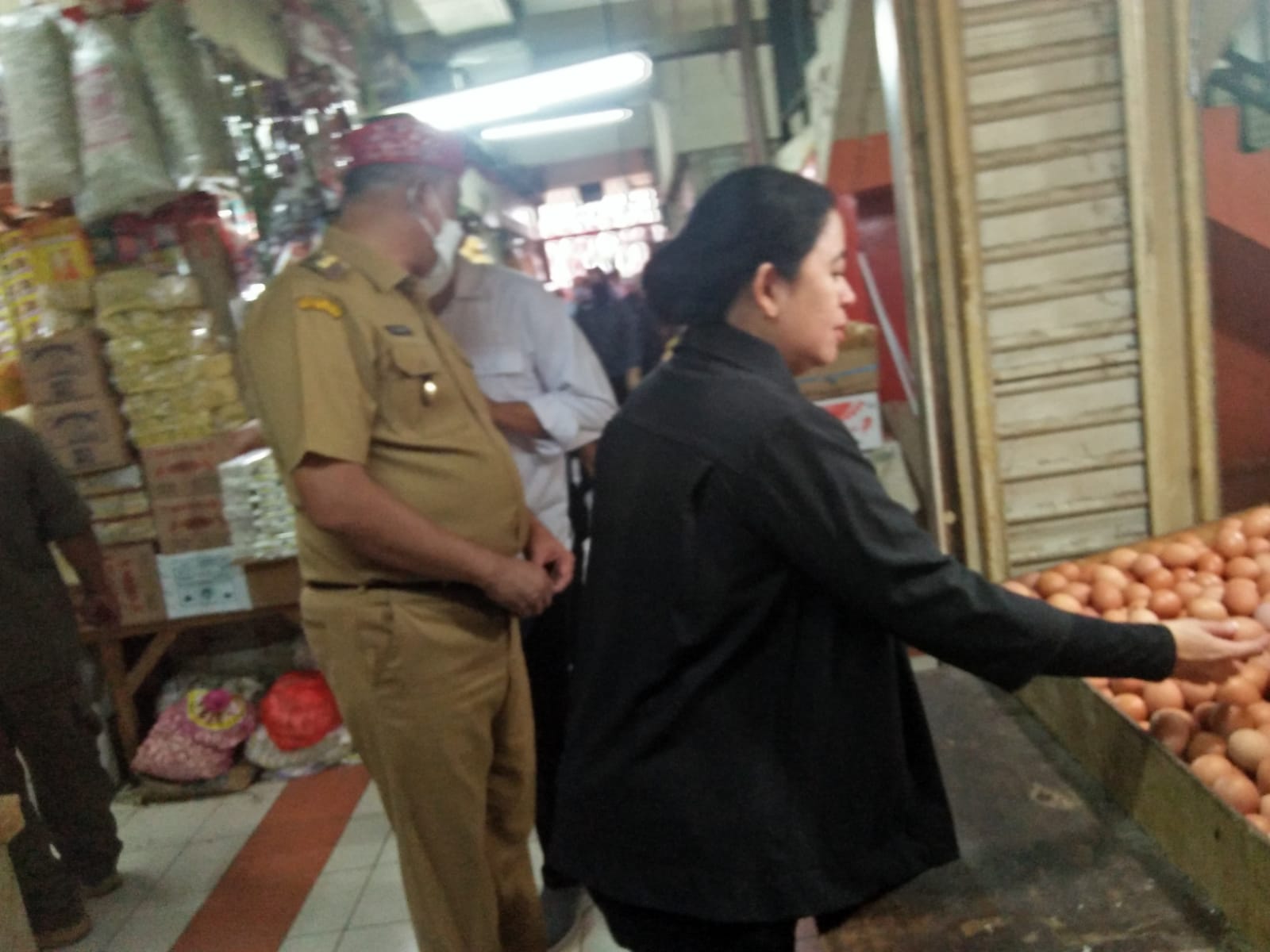Ia pun menyempatkan berdialog dengan pedagang minyak goreng menanyakan harga minyak." Apakah sudah stabil atau belum," kata Puan.